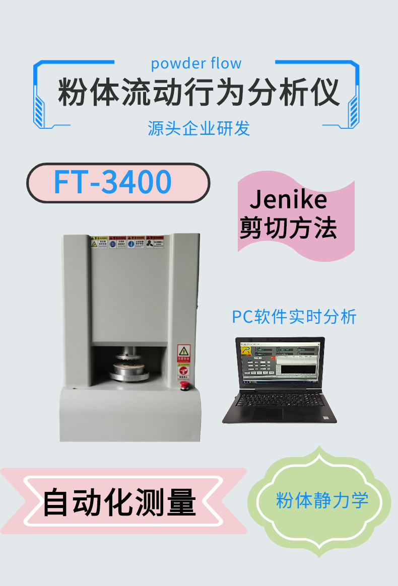 粉末流動性測試儀是評價粉體流動性的儀器統稱,粉末流動性的測試方法有多種,比如:綜合性的卡爾指數法,剪切法,旋轉圓筒法,單軸壓縮法,以及簡易休止角,流速測試,豪斯納比(振實密度與松裝密度獲得)的單項評定方法;這些方法需要根據實際粉體特性選擇使用.