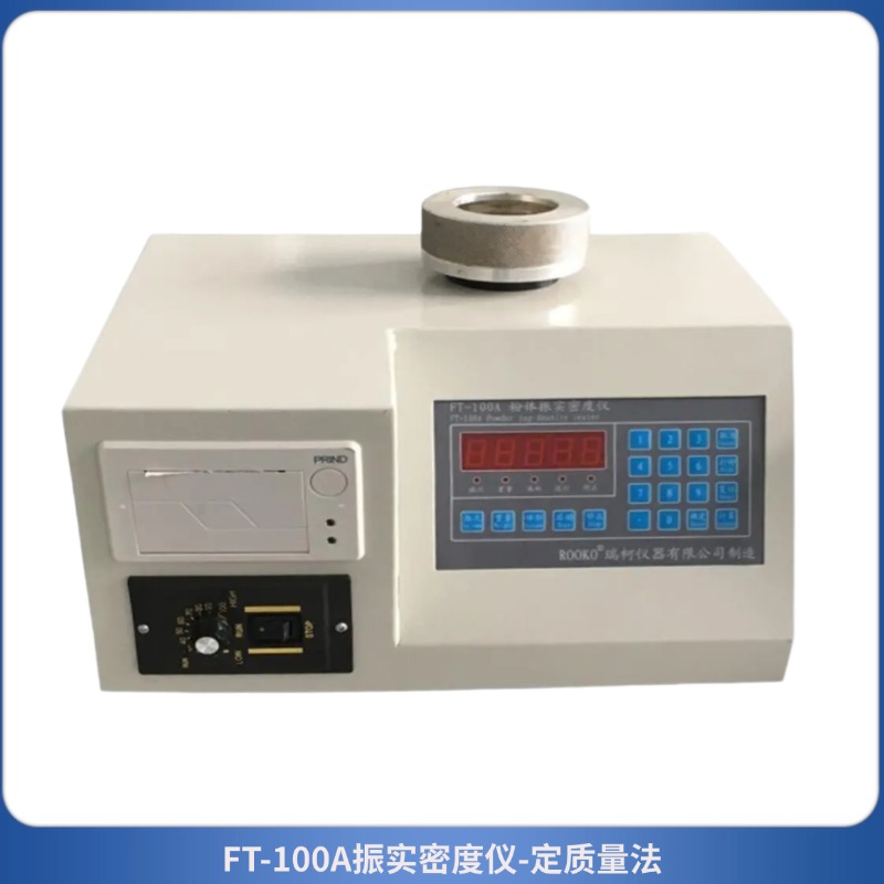 振實密度儀 FT-100A 通過可控振動組件帶動量筒完成上下運動,讓量筒內的粉體在受力條件下逐漸密實,直至體積不再發生明顯變化,以此模擬粉體在生產中的受力填充狀態。