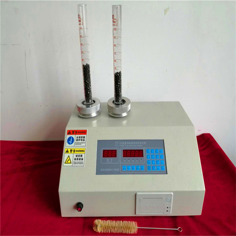 按上述過程測得總體積(V0)。將量筒固定在支架上。使用10 ,500和1250次拍打在同一粉末樣品,并讀取相應體積V10 , V500 和 V1250至最近刻度值。當V500和V1250相差小于或等于2ml時, V1250是振實體積。當V500和V1250相差超過2ml,重復增量,如1250次拍打,直至測量值間差異小于或等于2毫升。校驗時沖頭上粉末越少越好。計算出振實密度(g/ml)通過公式m/ VF ,其中VF是最終振實體積。拍填密度一般要求進行復測。指定落差結果。如果不能用100g試樣,可適當減少試樣量,也可以換成重量為130±16g的100 ml 玻璃量筒(讀出量程至1ml )并固定在240±12g的支架上。變更的測試條件與結果一起詳細說明。