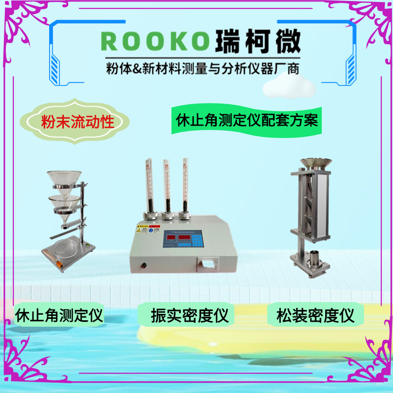 測試粉末和顆粒通過漏斗的時間和形成的角度,測試前進行預堆積,從而已知樣品量,將已知質量粉末從漏斗流出而形成的堆積角,以及流出所需要的時間;可以獲得休止角和流速數據。