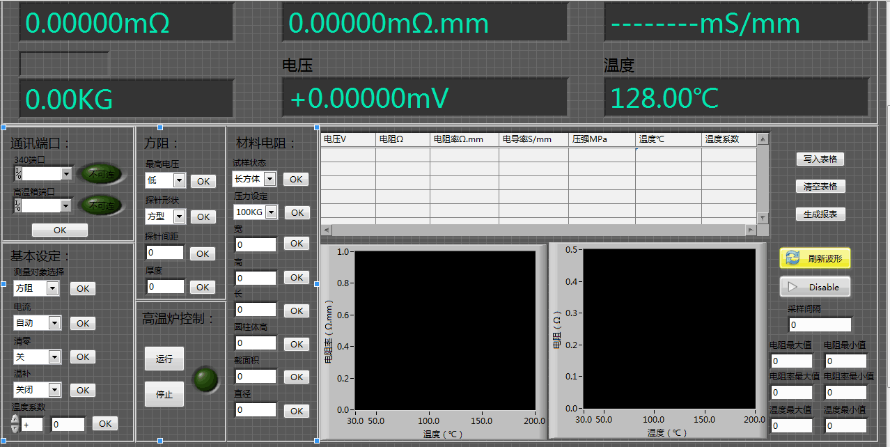 2、PC軟件顯示界面:電阻率、溫度、電流,電壓、樣品數(shù)據(jù);單位可以切換resistivity. temperature. current voltage. input test sample data; unit can be switched
