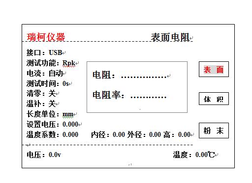 液晶顯示:電阻率,溫度,電流,電壓,壓強,樣品尺寸數據 |