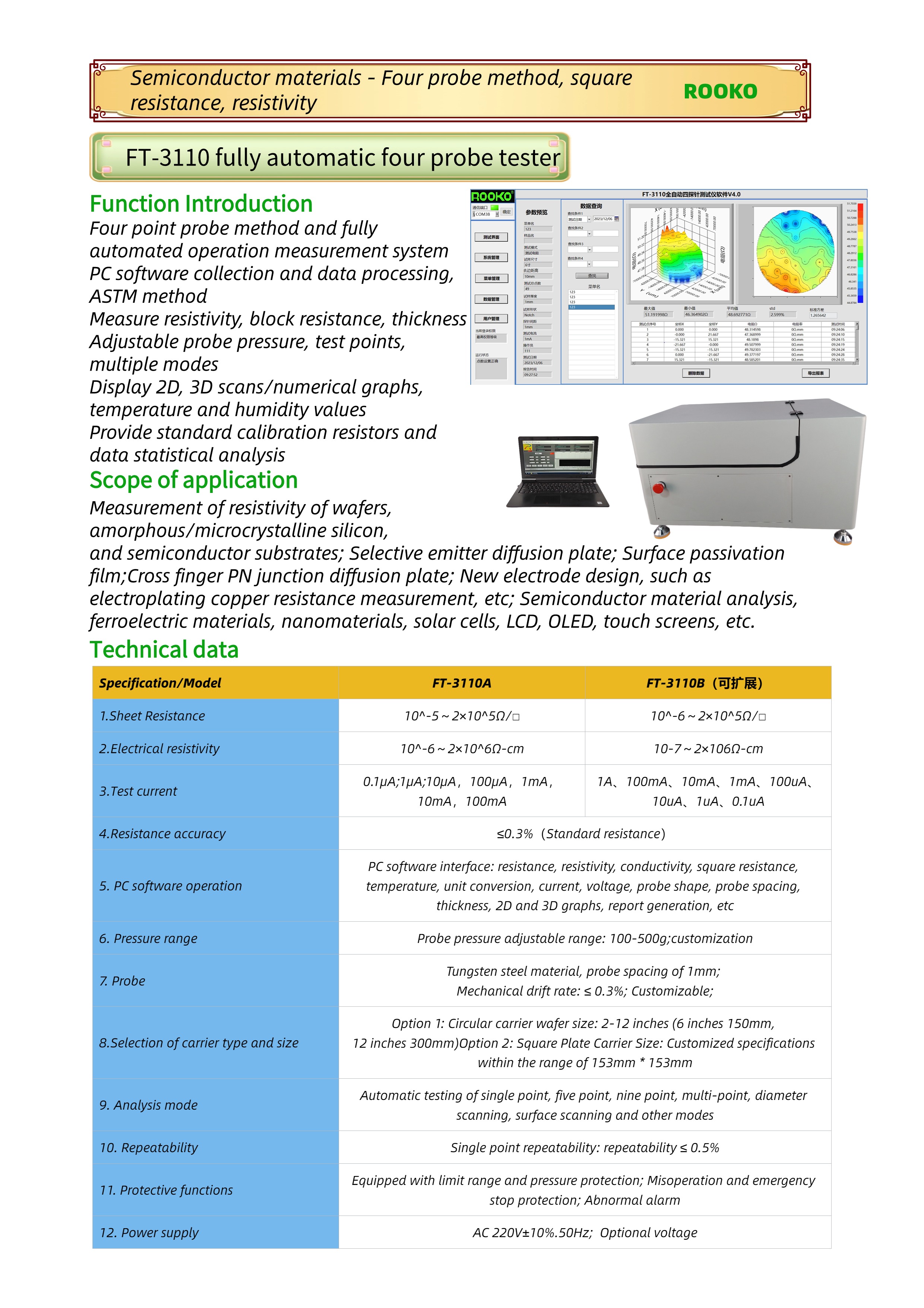 自動晶圓電阻率測試儀可測量Sheet Resistance電阻
