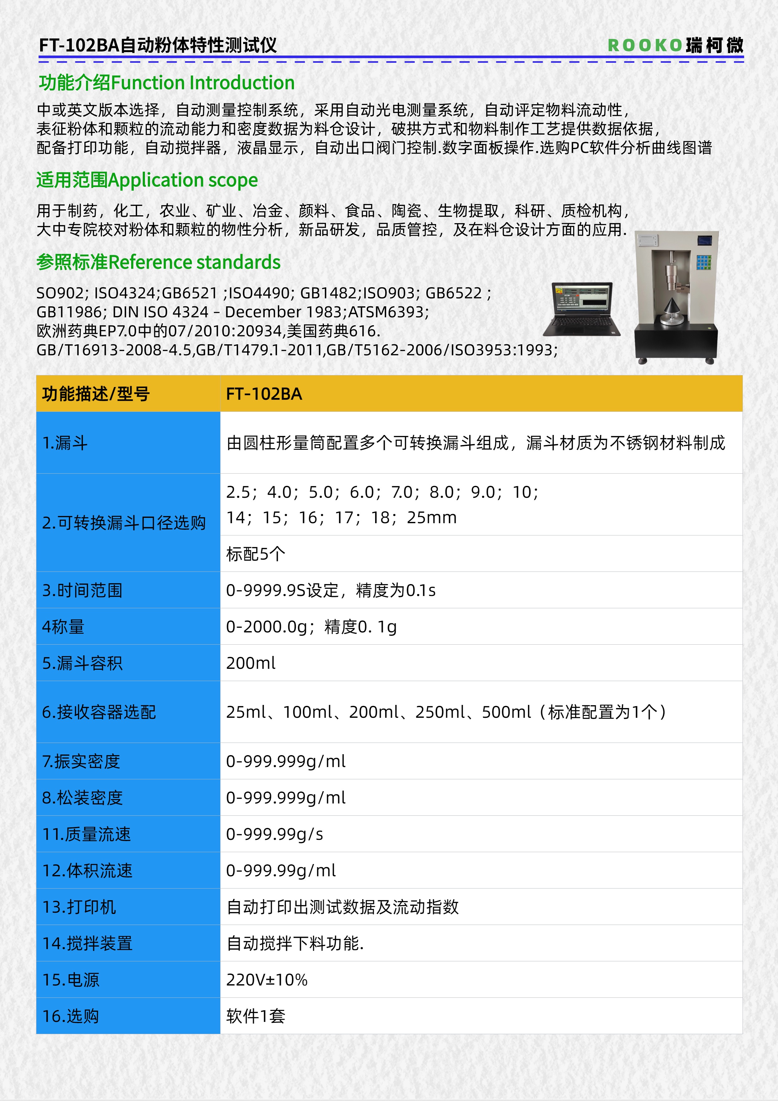 FT-102B 102BA 104BA 104BC粉體特性測試儀