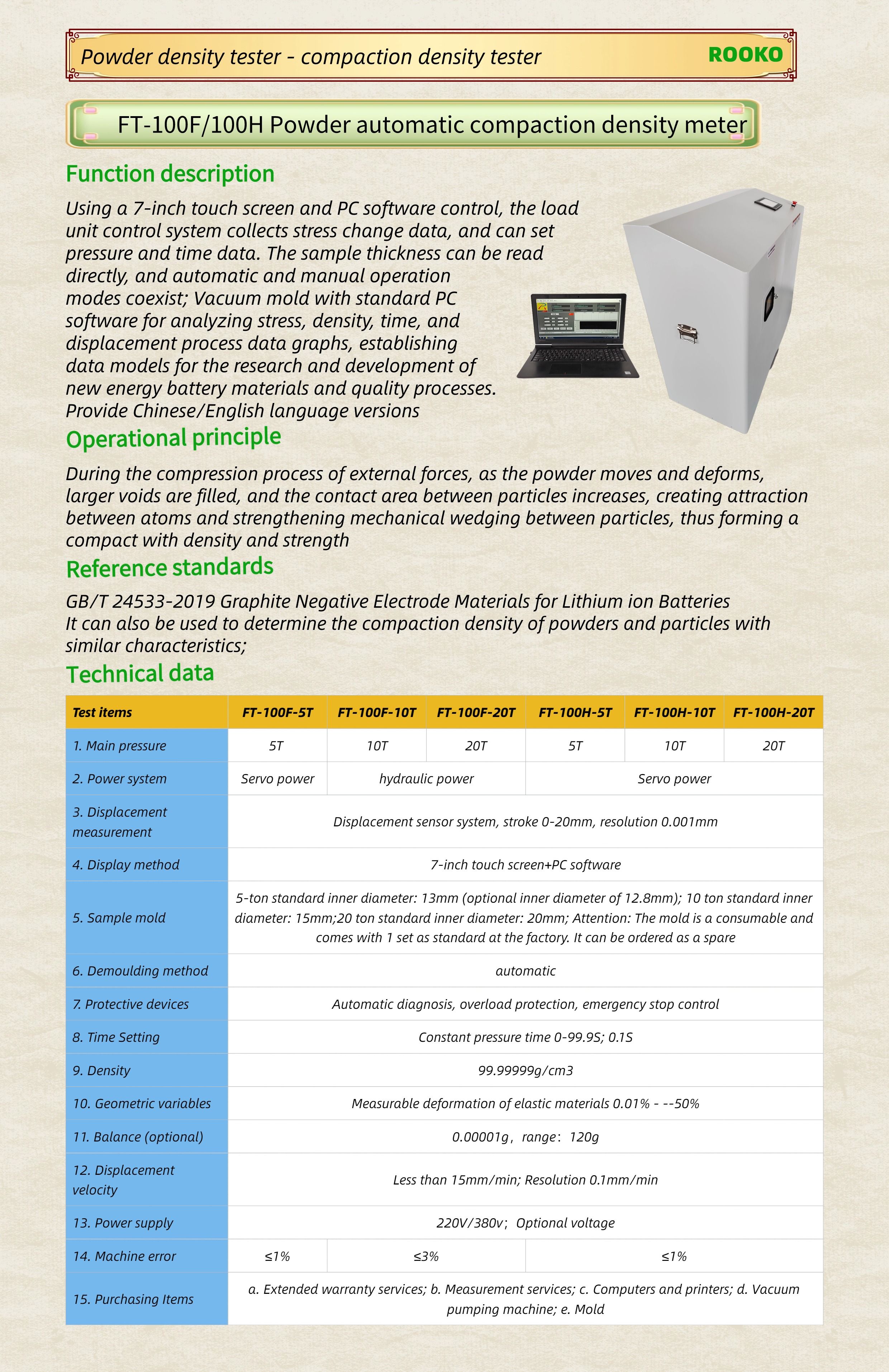 FT-100F/100H Powder automatic compaction density meter