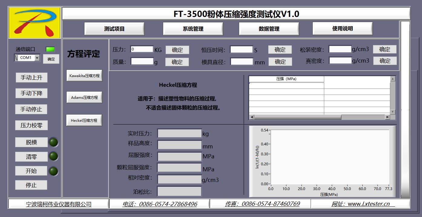 3. 采用經驗方程法:Heckel、Kawakita、Adams方程及川北方程線性回歸方程的壓縮理論來分析粉體顆粒新品、研發固體產品比如在藥物配比及工藝選擇方面及壓實密度對壓力的要求等的預測性分析工具.
