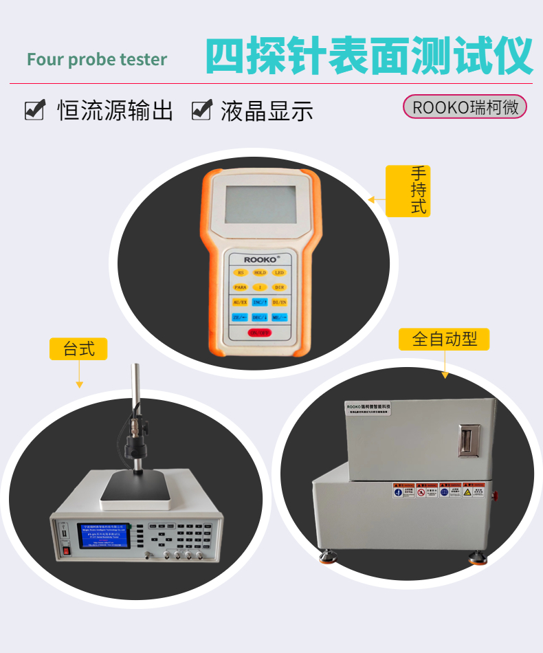 手持式外型結(jié)構(gòu),適用于車間生產(chǎn)、品管抽檢,外出攜帶測量的場所;也適用于中小型半導(dǎo)體材料生產(chǎn)企業(yè).